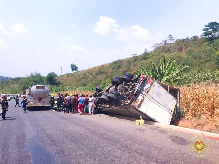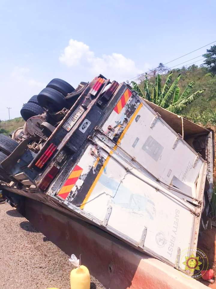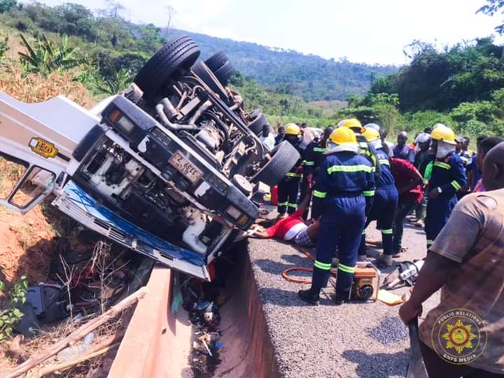 The victims were trapped in a Mercedes Benz DAF cargo truck, which had lost control while negotiating a curve on the Adukron Hill.