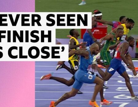 US sprint star Noah Lyles won the Olympic 100m title by five-thousandths of a...