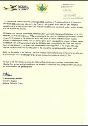 The Executive Director of the National Cathedral Project, Dr Paul Opoku-Mensah has debunked the reasons given by Archbishop Nicholas Duncan-Williams and Rev Eastwood Anaba for their resignation from the Board of the National Cathedral Project.