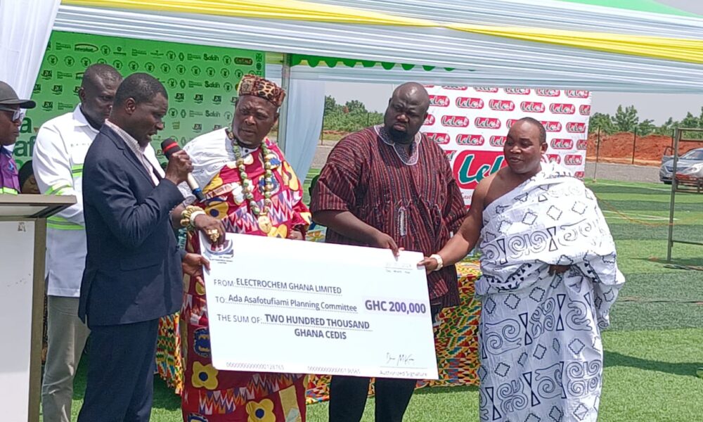 Electrochem Ghana Limited, a subsidiary of the McDan Group, operators of Africa’s largest salt mine and processing plant in Ada Songor for commercial salt production for domestic use and export has donated Two Hundred Thousand Ghana cedis (GHC 200,000) to the Ada Traditional Council in support of this year’s Asafotufiami.