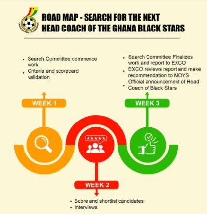 The search committee has three weeks to recommend the next Black Stars coach to the Executive Council for approval.