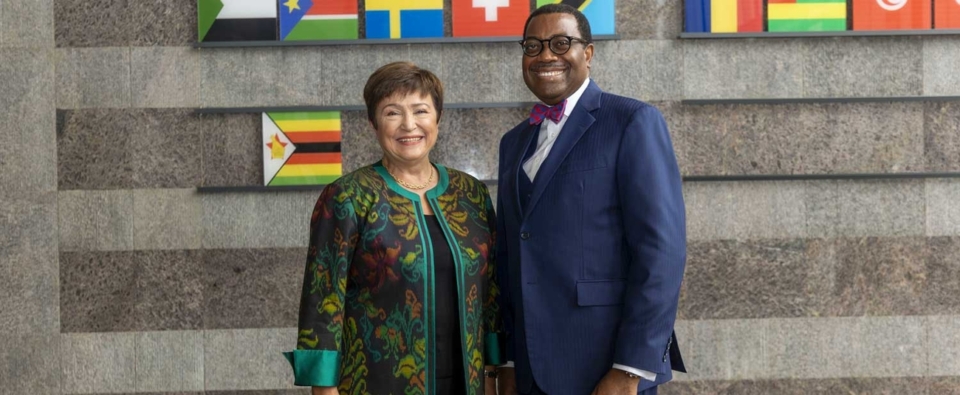 The IMF Managing Director, Kristalina Georgieva, met Thursday, October 5, 2023, with the President of the African Development Bank Group, Dr Akinwumi Adesina, in Abidjan, Cote D’Ivoire. It is the first time an IMF head has visited the Bank headquarters since its establishment in 1964.