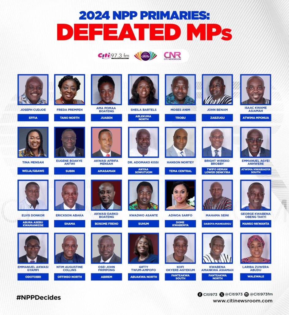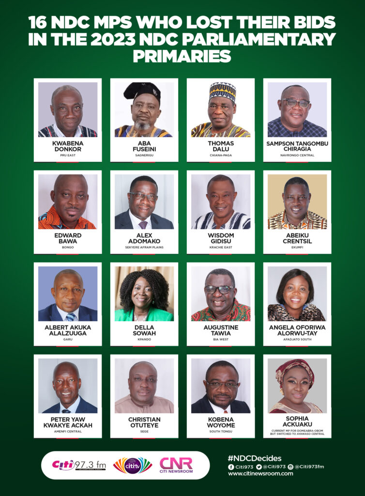 16 incumbent legislators on the NDC side also lost their parliamentary bids in May 2023.