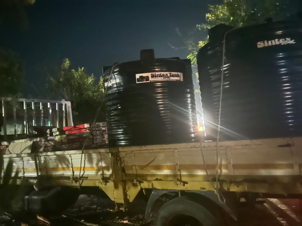 The items range from assorted drinks, water, rice, tomato cans, blankets, cloths, mattresses, and the most importantly Polytanks.