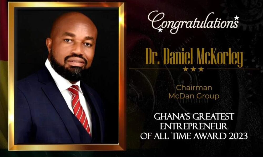The Founder and Executive Chairman of the McDan Group of Companies, Dr Daniel McKorley has been adjudged Ghana’s Greatest Entrepreneur of All Time recognition at the 14th edition of the Ghana Entrepreneur and Corporate Executive Awards held in Accra.