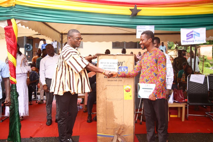 Madam Perfect Asamoah of the Jasikan Demonstration Primary School received the overall Best Female Teacher award and took home a double door refrigerator and a certificate whiles Mr Kingsley Obour Asiedu of the Ketsi M/A Junior High School took the overall Best teacher prize in the Municipality and went home with a double door refrigerator, 32 Inch TV set, a microwave and a certificate.