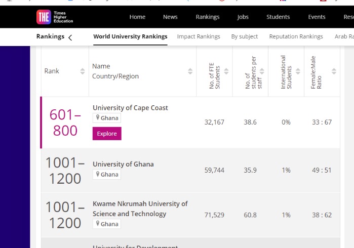 UCC Is Best Vasity in Ghana & West Africa -World University Rankings